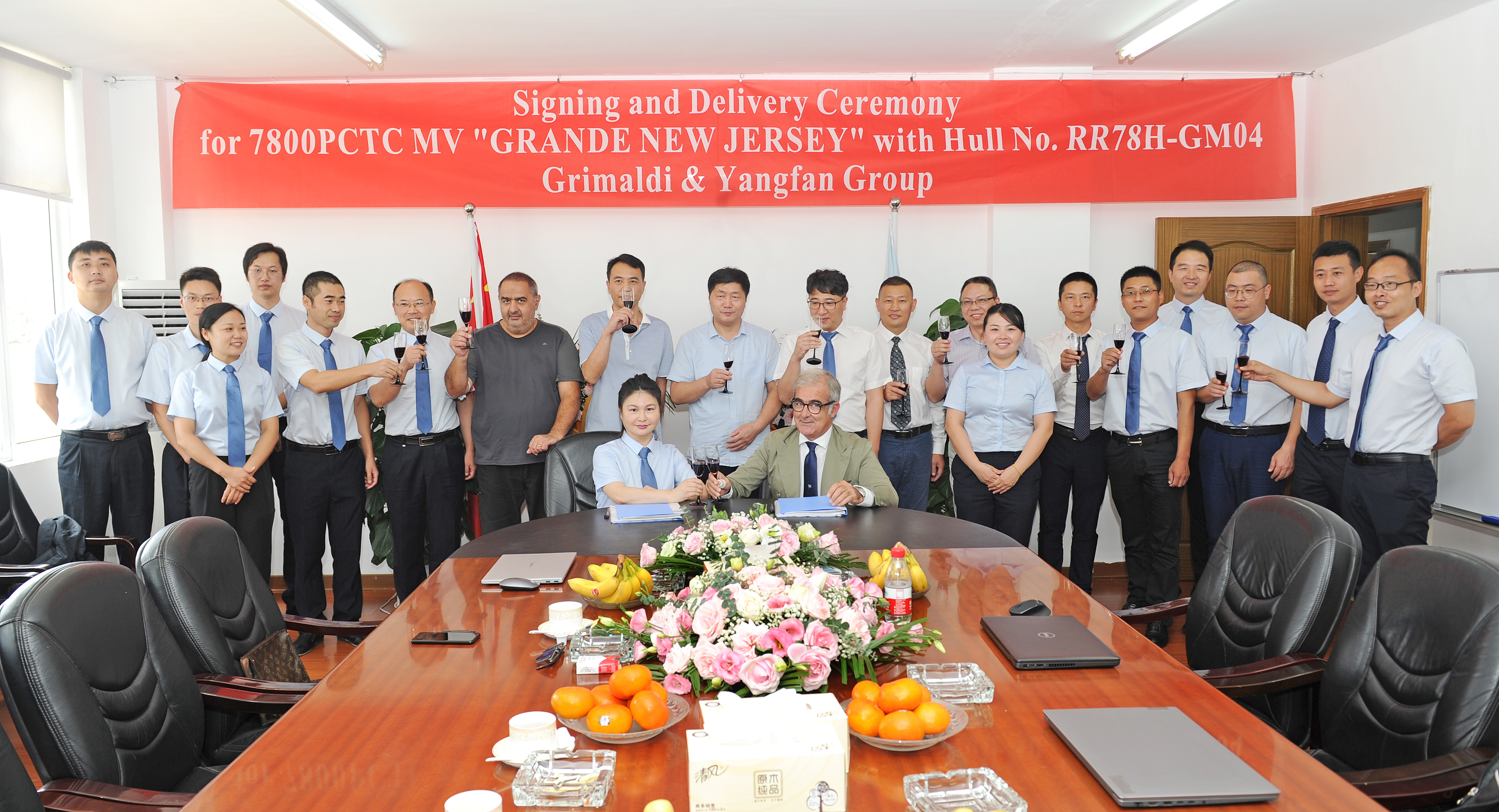 2020年9月2日,揚帆集團股份有限公司下屬浙江東海岸船業有限公司承建的7800車位汽車運輸船(PCTC)系列船“GRANDE NEW JERSEY”號(GM04)正式簽字交付。該船從出塢到一次試航成功碼頭周期不到80天。船東對該船的各項性能指標非常滿意。