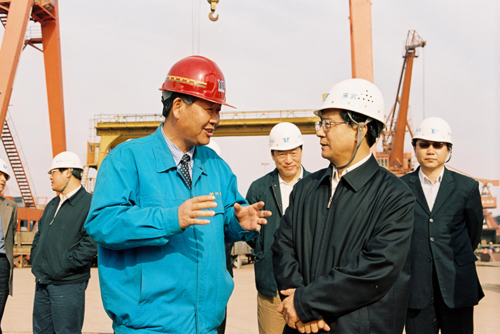 2007年4月12日,浙江省委書(shū)記趙洪祝(前右一),對(duì)揚(yáng)帆集團(tuán)的跨越發(fā)展成績(jī)表示肯定,并指出,作為舟山臨港工業(yè)的一個(gè)亮點(diǎn),揚(yáng)帆集團(tuán)應(yīng)該繼續(xù)保持目前的發(fā)展勢(shì)頭以及在國(guó)內(nèi)外市場(chǎng)的良好聲譽(yù)和信譽(yù)。